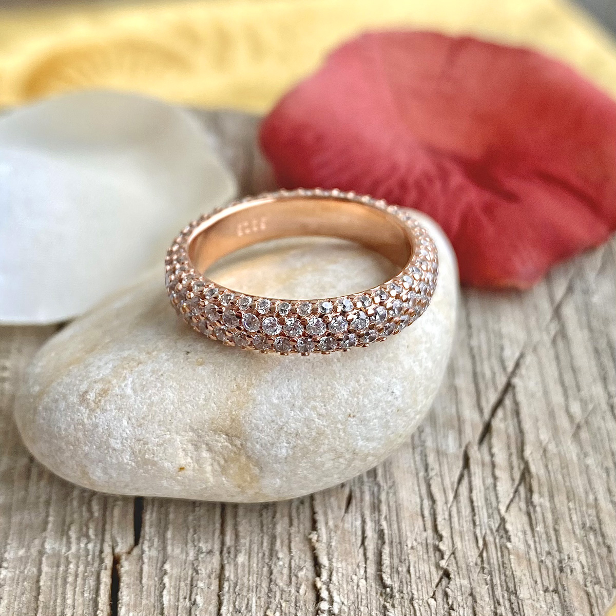 Srebrni prsten  „Rose Lux“ u nijansi roze gold, ukrašen blistavim cirkonima koji mu daju glamur. Komad nakita koji je u trendu:)
