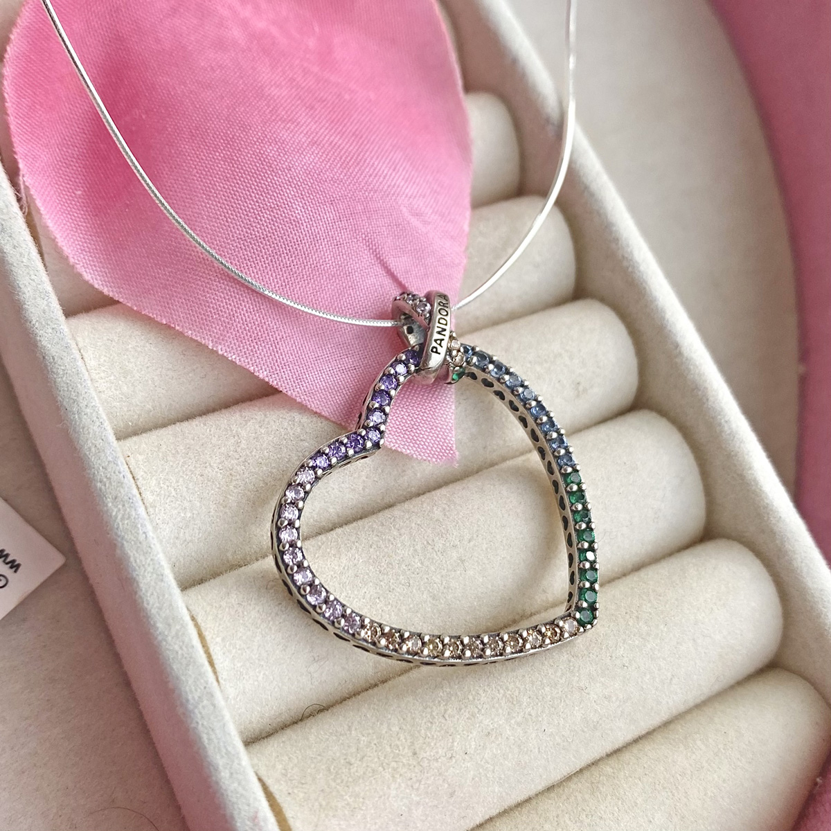 Srebrna ogrlica sa srcem i šarenim cirkonima – elegantan i romantičan nakit savršen za poklon ili svakodnevno nošenje.