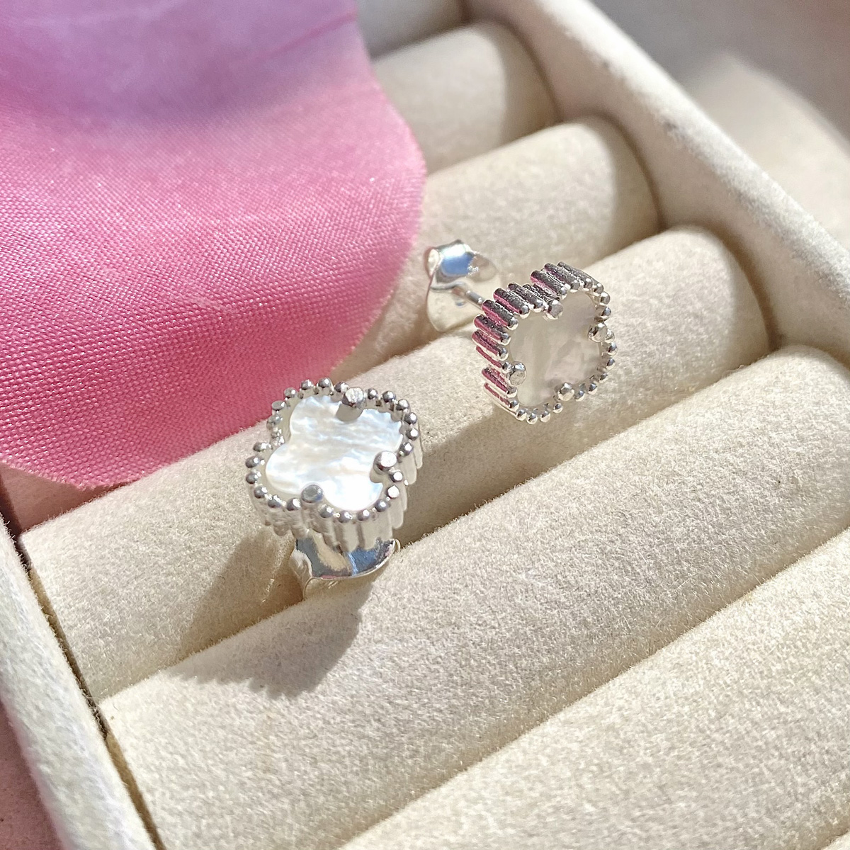 Unesite simboliku sreće i sofisticiranu eleganciju u svoj stil uz ove prelepe srebrne minđuše sa sedefom u obliku deteline. Njihov nežan dizajn inspiriše prirodom, dok sedefasti detalji reflektuju svetlost i daju diskretan, luksuzan sjaj.