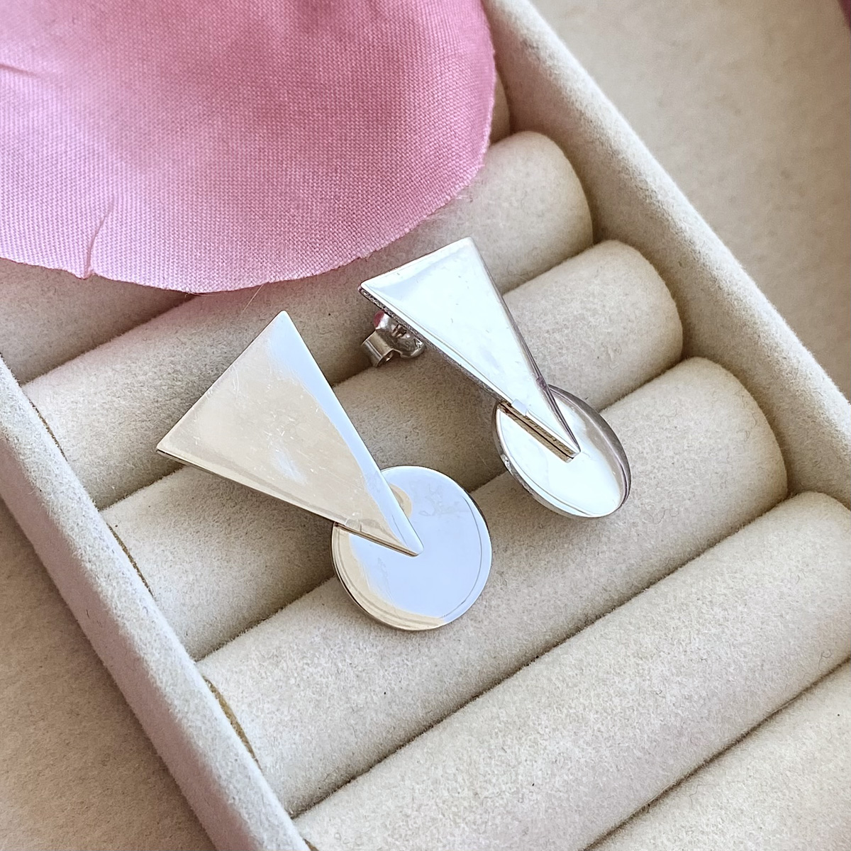 Moderne srebrne minđuše 925 sa geometrijskim dizajnom trougla i kruga.