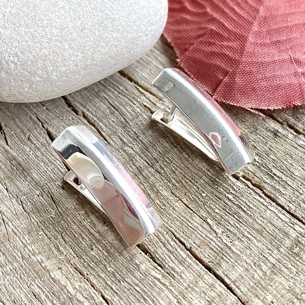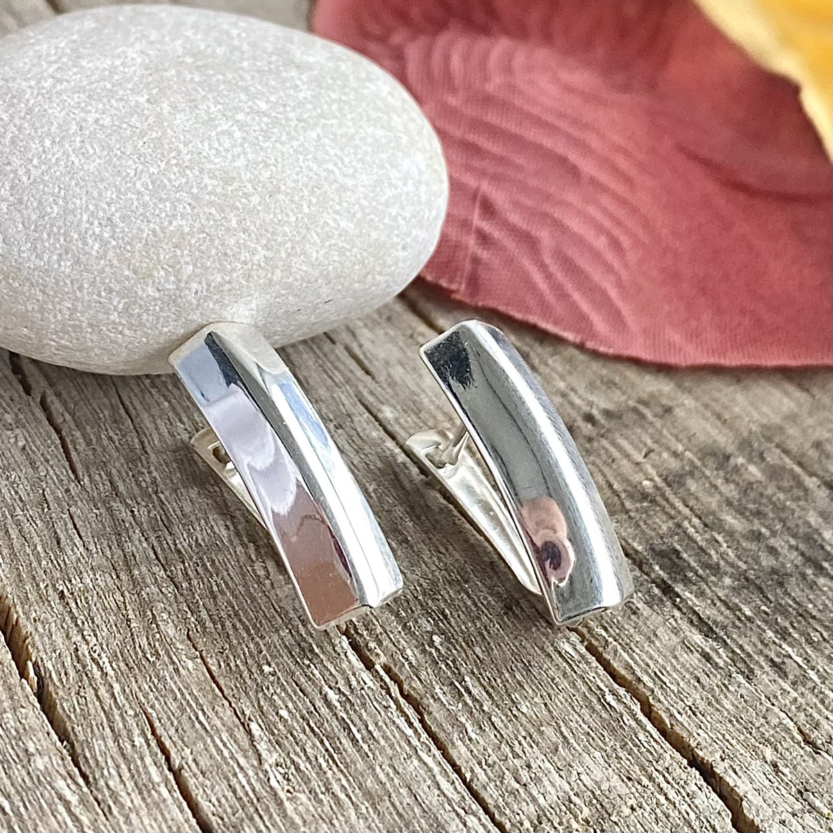Srebrne minđuše „Sticks“ od glatkog srebra, na kopču, pružaju jednostavan, ali elegantan izgled.