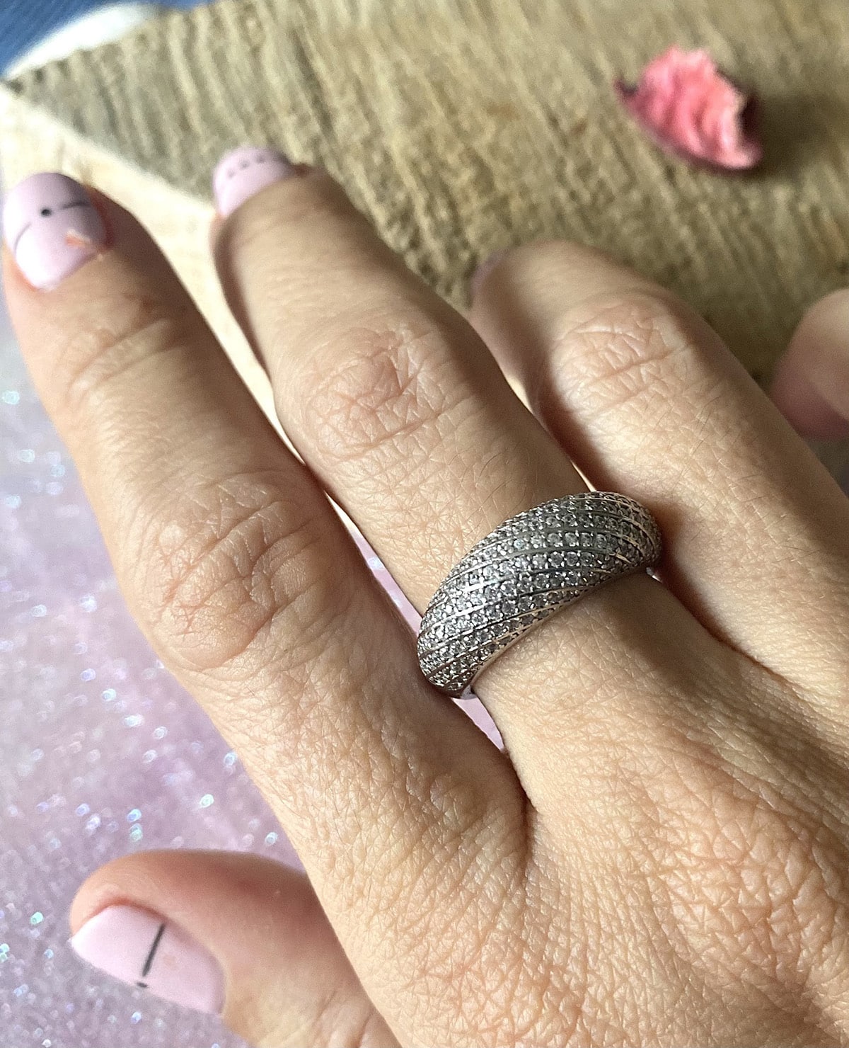 Srebrni prsten „Glamour“, sa mikrocirkonima, modernog dizajna.